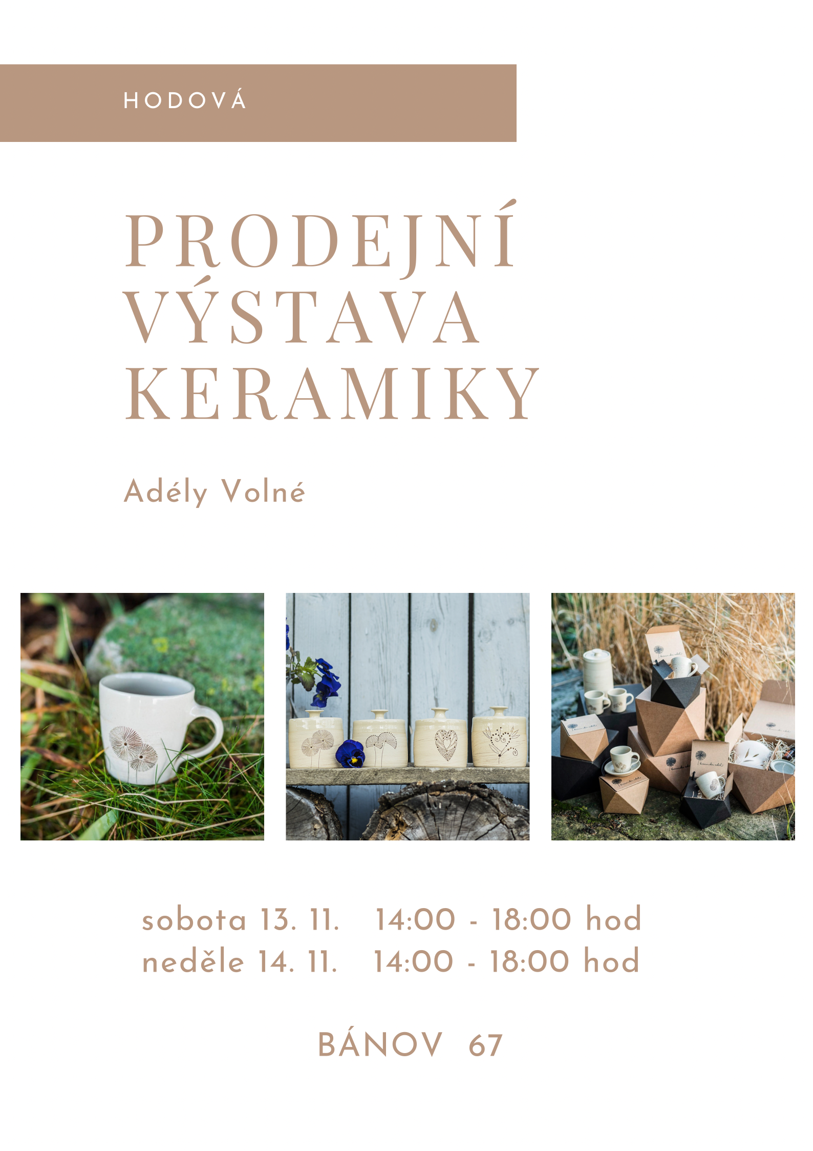 Ve dnech 13. 11. 2021 a 14. 11. 2021 od 14:00 - 18:00 hodin se bude konat prodejní výstava keramiky Adély Volné. Pokračovat