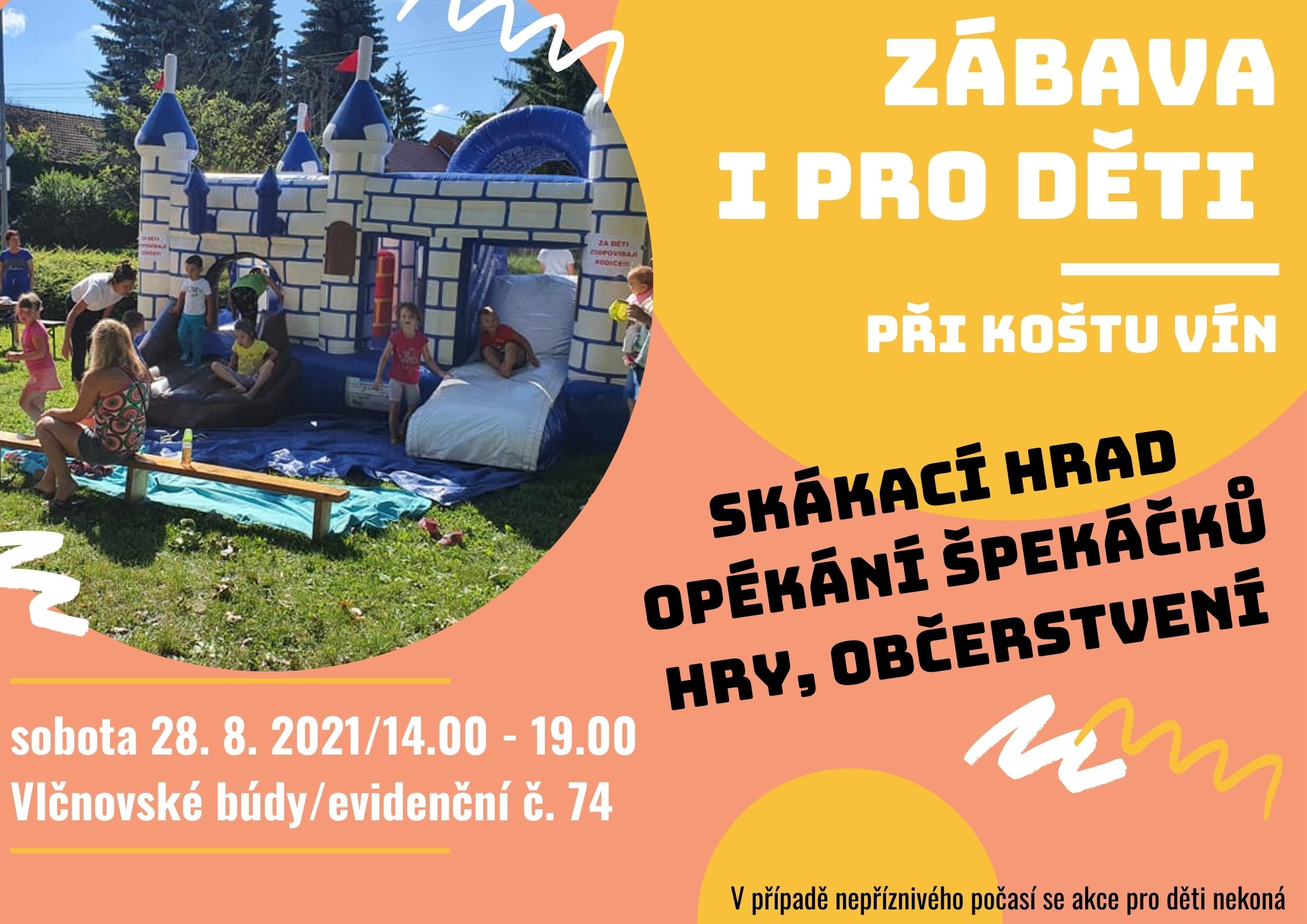 V sobotu 28. 8. 2021 od 14:00-19:00 hodin se ve Vlčnově bude konat zábavné odpoledne pro děti při koštu vín. Pokračovat